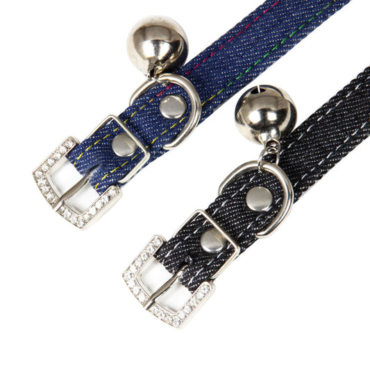 Pet Adjustable Collar With Bell Leather Denim Cat Scarf