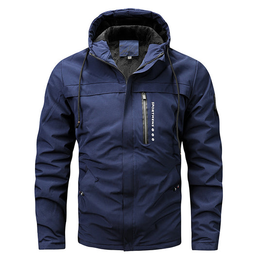2023 Winter New Plus Size Fleece Hooded Jacket Outdoor Casual Men's Jackets Shell Jacket