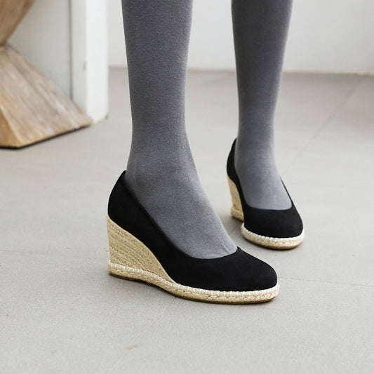 European And American Straw Woven Wedge Heel Fisherman Shoes
