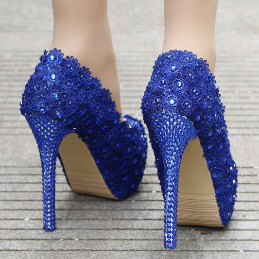 Lace Wedding Shoes Rhinestone Blue Lace Shoes