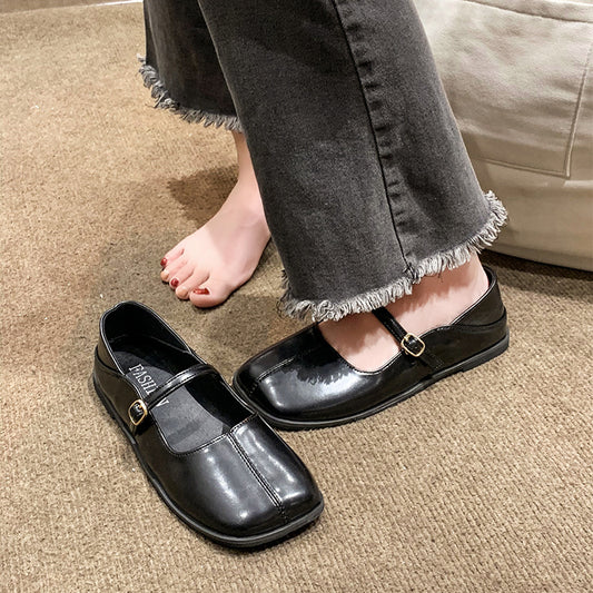Flache quadratische Kopf handgefertigte Schuhe weibliche Retro Französisch Mary