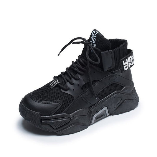 Female Ins Tide Breathable Thick-soled Student Flying Woven High Sneakers