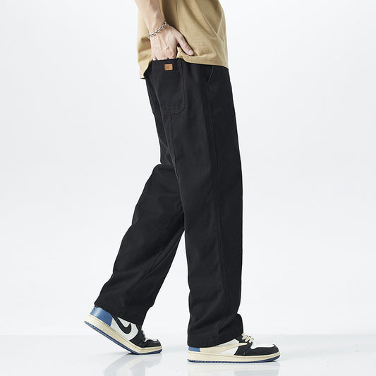 Pure Cotton Casual Pants Men's Autumn And Winter Fleece-lined Thickened Straight Trousers