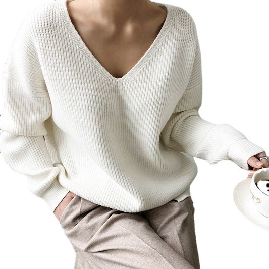 European And American Autumn And Winter Ins Style Simple Solid Color Big Neckline Tassel Pullover Knitted Sweater