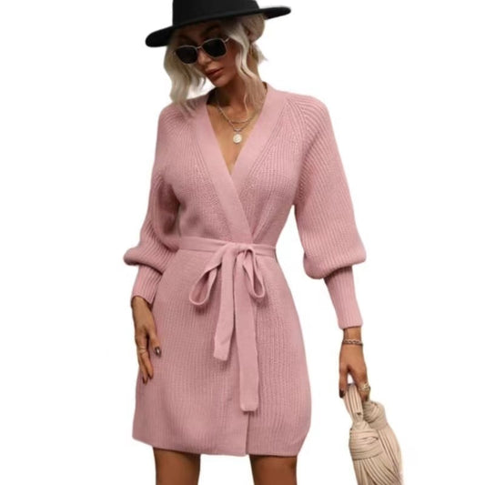 Women's Solid Color Knitted Lace-up Cardigan Sweater