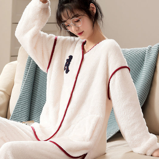 New Flannel Pajamas Women's Long Sleeve Fleece-lined Cartoon
