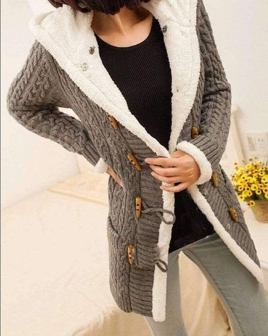 Jacket with hood and fleece winter sweater long sleeves