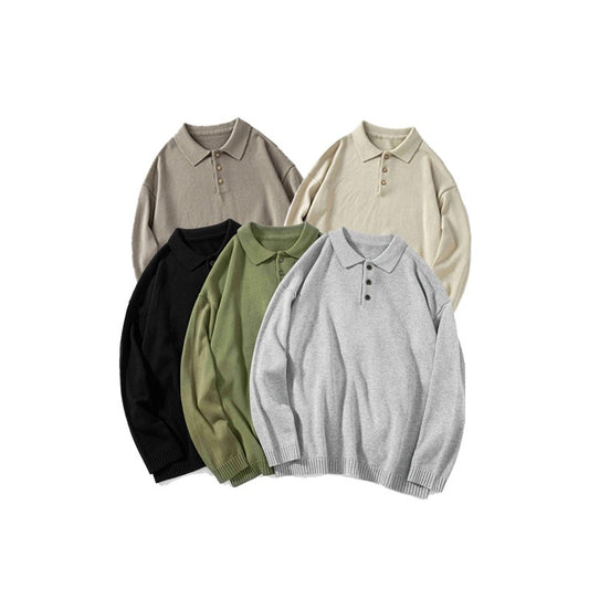 Japanese-style Retro Basic Polo Collar Sweater Loose All-matching