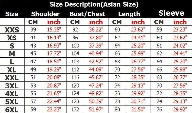 Size: XXS,XS,S,M,L,XL,XXL, XXL,XXXXL