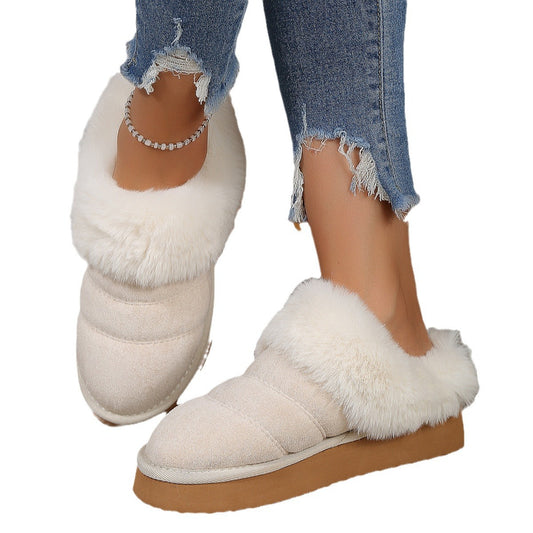 Winter Plush Cotton Shoes Women Men Warm Suede House Shoes For Parents Solid Color Thick-soled Garden Shoes Outdoor