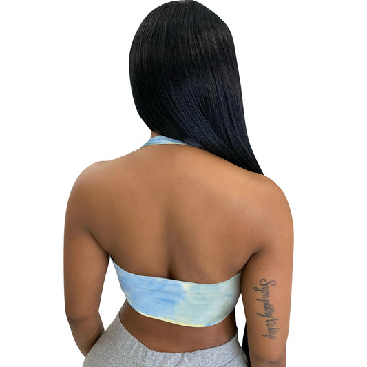 The New Pit Strip Tie-Dye Halter Neck Small Vest Hollow Exposed Navel Street Halter Sexy Vest