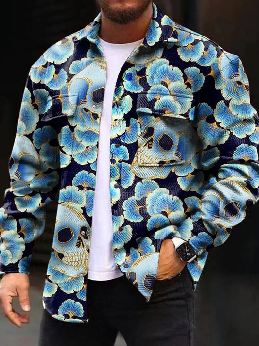 Summer Menswear 3D Printing Lapel Long Sleeve Shirt