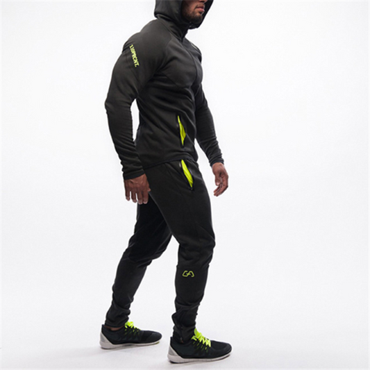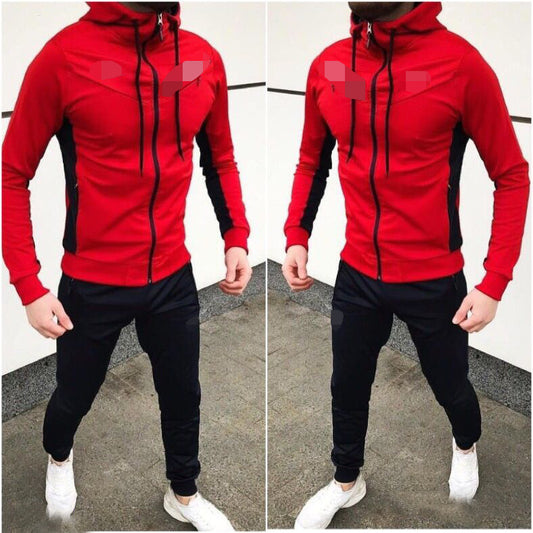 Two Piece Suit Men Fashion Hooded Jacket Coat Pants