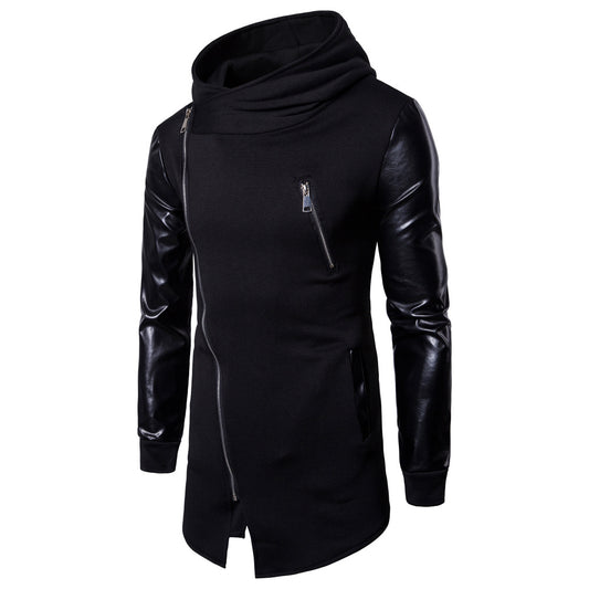 Men's Casual Fashion Leather Patch Zip Sweatshirt