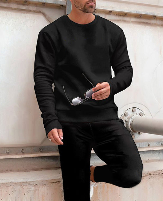 Solid Color Digital Printed Round Neck Sweater Trousers Men's Suit