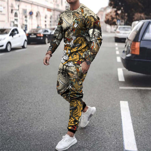 Round Neck Long Sleeve T-shirt Trousers Suit Men