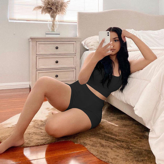 Gauze Mesh Sheer Two Piece Sportswear Women Beachwear Zip Top Black Shorts Set