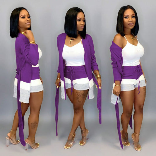 Women's Autumn And Winter Cute Cardigan Shorts Two-piece Set