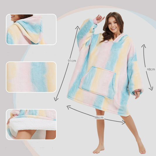 Cute Print Hoodies Sweater Winter Thickened Plush Fleece Sofa Blanket Home Clothes Oversized Lazy Homewear Pajamas With Pocket