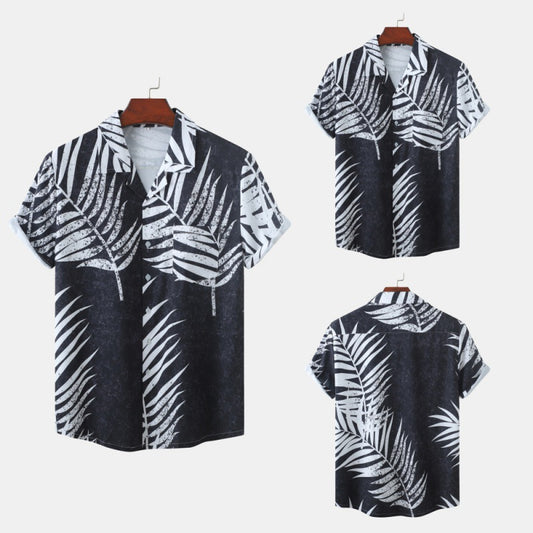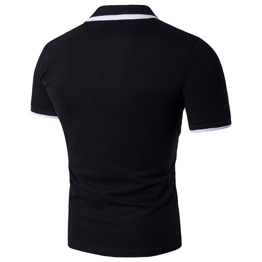 Hollow Out Men's Hem Printed Lapel Short Sleeve LARGE T-SHIRT