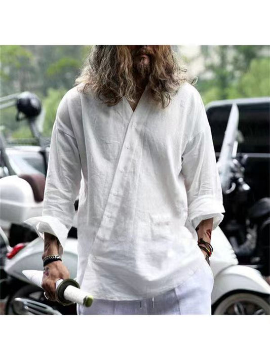 Men's Casual Short Sleeve Ramie Embroidered T-Shirt