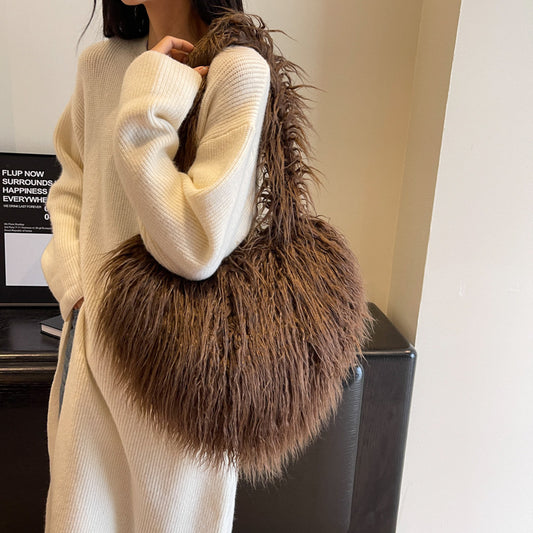 Plush Armpit Shoulder Bags Winter Large Capacity Personalized Heart Bag Women's Luxury Handbags High Quality Valentine's Day Gift