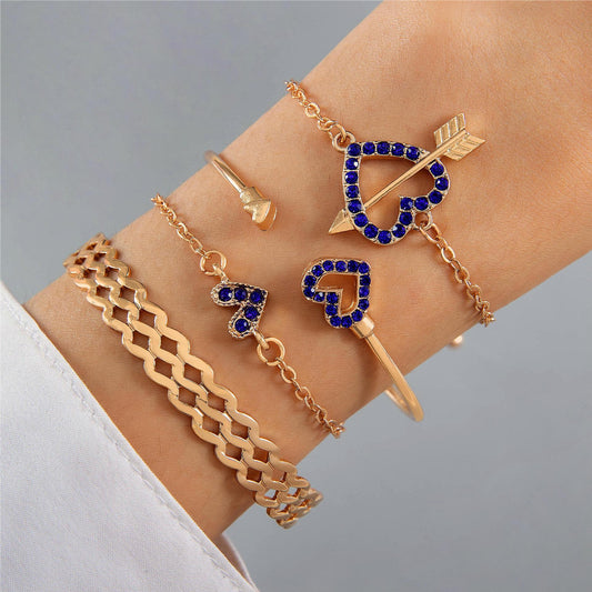 4pcs Blue Flower Love Butterfly Bracelet Set With Rhinestones Design Valentines Day