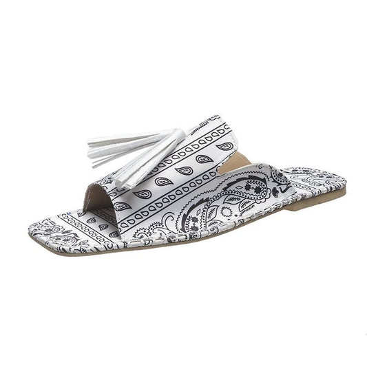 Women's Fringed Colorblock Square Toe Flat Sandals