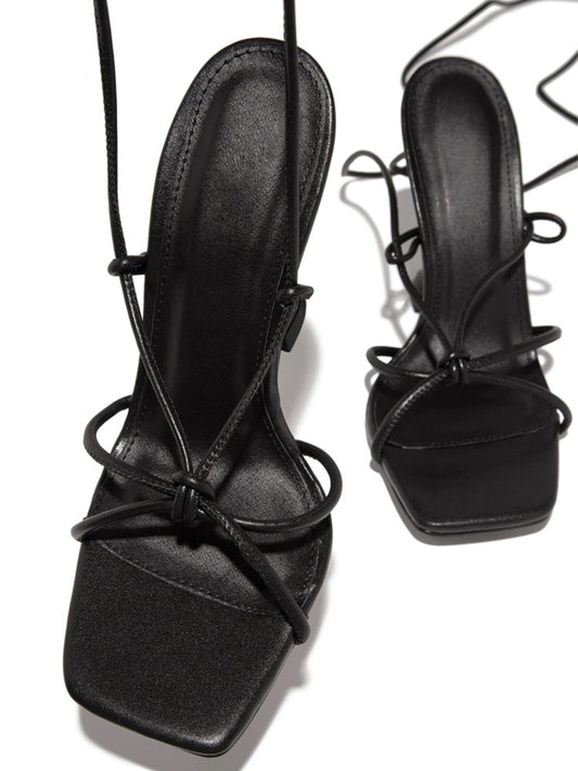 Summer Peep Toe Sandals Stiletto Heel Lace-up