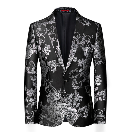 Men's Floral Suit Casual Small Suit Gilding Printed Coat Men