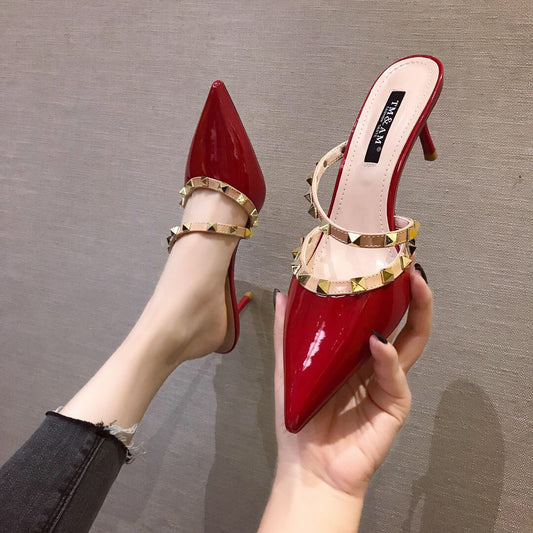 New Fashion Pointed Head Fine Heel High With A Word With Rivets Sandals