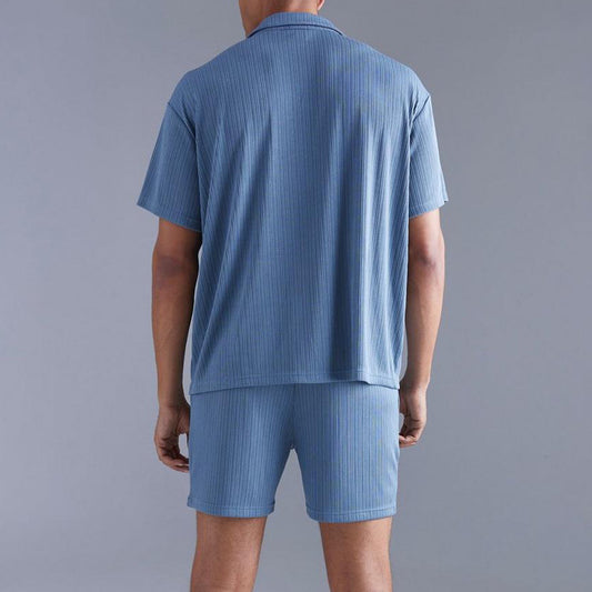 Men's Fashion Waffle V-neck Short-sleeved Shorts Two-piece Set