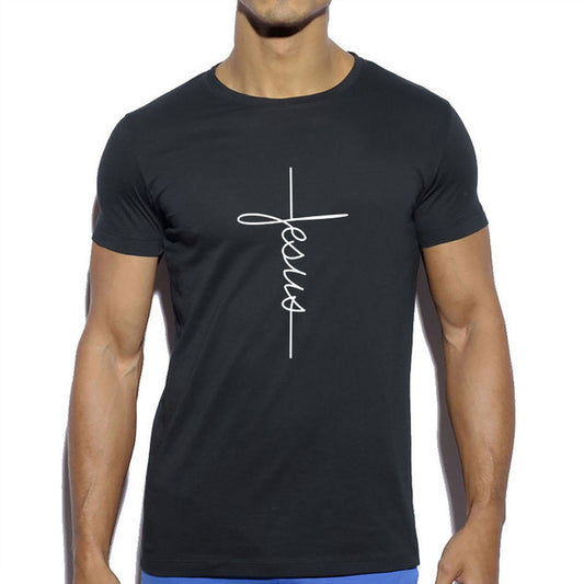 Men's Short Sleeve Jesus Christ Cross Print T-Shirt